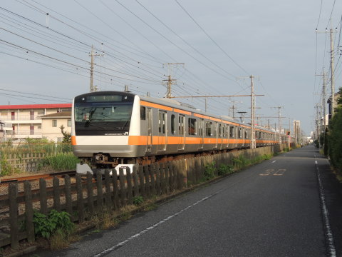 青梅線 E233系0番台(下り) 羽村(はむら)~福生(ふっさ)間を羽村駅方面(青梅・奥多摩方面)へ行く、E233系0番台(青463編成)「各駅停車 青梅」行(立川始発)です。 福生駅の北西約1kmあたりのところにある「福生第五踏切」付近にて撮影。 2014.06.22現在 |