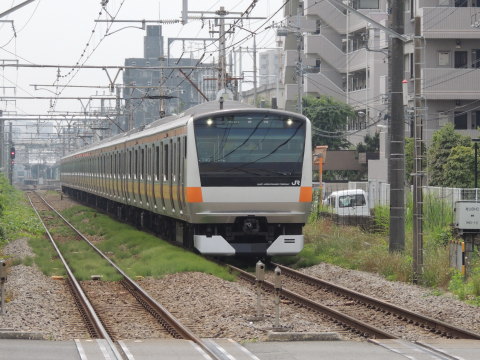 | 青梅線 E233系0番台(上り) 西立川駅方面(拝島・青梅方面)から終点の立川駅(1番線)に接近中の、E233系0番台(T2編成)「各駅停車 立川」行(1020T・青梅→立川)です。 立川駅の中央線3番ホーム西端側(八王子・拝島寄り)にて撮影。 2017.06.17現在 |