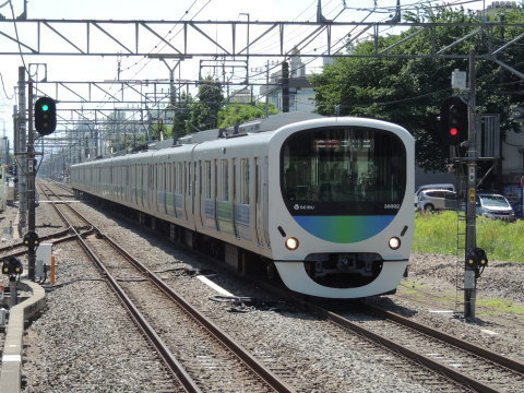 30000系(下り) 中井駅方面(高田馬場・西武新宿方面)から、新井薬師前駅(1番線)に接近中の、30000系(スマイルトレイン・38108F・8両編成)「各停 新所沢」行です。 新井薬師前駅の1番線ホーム中ほどにて撮影。 2016.06.26現在 |