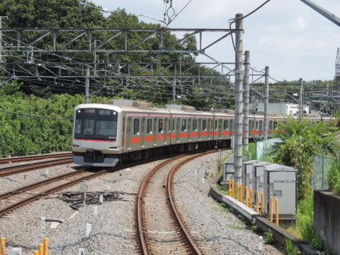 東急 5050系4000番台(下り) 稲荷山公園駅方面(所沢・池袋方面)から入間市駅(3番ホーム)に接近中の、東急「5050系4000番台」(第1編成)「快速急行Fライナー 飯能」行(元町・中華街始発)です。 入間市駅の2・3番島式ホーム北東端側(稲荷山公園・池袋寄り)にて撮影。 2016.08.07現在 |