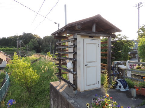 | ホームへと上がる階段の脇に設置されているトイレ ホームへと上がる階段の横には、簡易型のトイレが設置されています。 2015.05.02現在 |