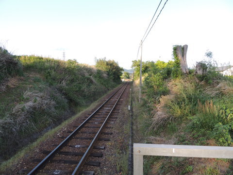 | 駅入口階段の途中から見る駅のホーム 築堤上のホームへと上がる階段の途中から、戸綿駅の様子を撮影したものです。 2015.05.02現在 |