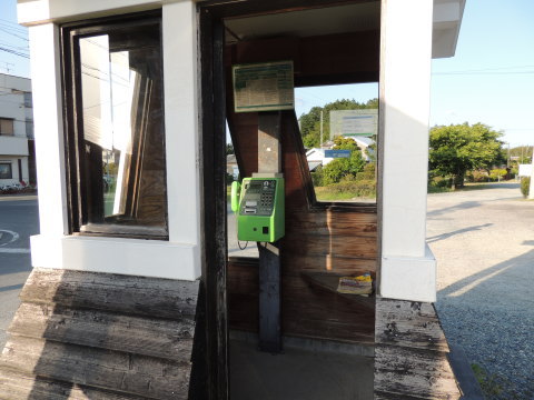 | 駅前に設置されている公衆電話ボックス 駅前には、とても豪華な造りのレトロ風の公衆電話ボックスが設置されています。 2015.05.02現在 |