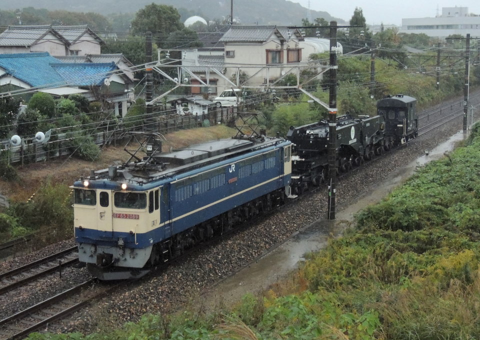 | EF65-2089+シキ801B2+ヨ8402(空車/9863レ) 豊橋←二川 降りしきる雨の中、東海道本線(下り線/JR東海)の豊橋~二川間を豊橋駅方面(岡崎・名古屋方面)へ行く、EF65-2089[新鶴見]+シキ801B2+ヨ8402(空車/9863レ)です。 今回のシキ801B2(空車)は、どうやらEF65の牽引により稲沢まで輸送され、その後、おそらくDD200の牽引により稲沢から春日井まで輸送(貸出回送)されるようです。 その後は、愛知電機株式会社から中部電力浜松変電所まで変圧器が輸送されたようです。 2023.11.10(Fri)[12:47]現在~天気は雨 【ネット上で見かけた今回のシキ801B2の送り込み回送の各駅等目撃時刻】 ~※あくまで参考スジ程度としてください。ダイヤの乱れなどにより実際の運転予定時刻と異なる場合があります。 ・11.09(木) EF65-2089[新鶴見]+シキ801B2+ヨ8402 宇都宮貨物ターミナル→9584レ→大宮→西浦和→府中本町→新鶴見信号場→9585レ→鶴見川橋梁→横浜羽沢 ・11.10(金) EF65-2089[新鶴見]+シキ801B2+ヨ8402 横浜羽沢→8863レ→戸塚(06:43頃)→大船→辻堂(06:57頃)→小田原→熱海→沼津→9863レ→静岡貨物→天竜川(11:44頃)→西浜松→二川(12:46頃)→幸田(13:16頃/側線着)→岡崎→安城(13:39頃)→名古屋→稲沢 ・11.11(土) DD200-15[愛知]+ヨ8402+シキ801B2 稲沢→9881レ→春日井(中線/05:33頃着) スイッチャー+ヨ8402+シキ801B2 春日井→愛知電機株式会社 弥生町貨物取扱所(春日井駅の西方約700m) ・11.15(水) 変圧器積載作業実施 ・11.18(土)深夜 DD200-23[愛知]+シキ801B2(変圧器積載)+ヨ8402 春日井→9584レ→勝川(00:40頃)→千種→(00:59頃)→鶴舞→金山→名古屋→稲沢 ・11.19(日)深夜~早朝 EF65-2074[新鶴見]+ヨ8402+シキ801B2(変圧器積載) 稲沢→9198レ→名古屋(03:12頃)→豊橋→浜名湖橋梁(日の出後)→西浜松~日中に変圧器取り外し作業実施 ・11.20(月) EF65-2074[新鶴見]+ヨ8402+シキ801B2(空車) 西浜松→8862レ→静岡貨物→西湘貨物→相模貨物→大船(19:50頃)→横浜羽沢→川崎貨物 ・11.21(火) EF65-2074[新鶴見]+シキ801B2(空車)+ヨ8402 ※下記は8171レの定刻の場合 川崎貨物(03:13頃発)→8171レ→新鶴見信号場(03:32頃着~03:40頃発)→大宮(04:44頃着~04:58頃発または05:01頃通過?/当日は停車せず通過した可能性有り)→宇都宮貨物ターミナル(06:06頃着) |