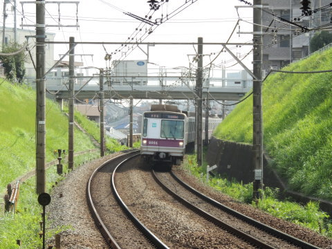 | 東急 5000系(上り) 始発駅の中央林間駅方面から、つきみ野駅(2番線)に接近中の、東急5000系(5102編成)「各駅停車 押上」行です。 つきみ野駅の1番ホーム西端側(中央林間寄り)にて撮影。 2012.10.01現在 |
