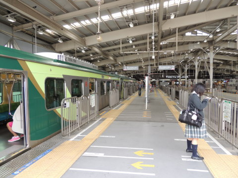 | 東急多摩川線の3・4番線ホーム 東急蒲田駅のホーム南側部分が、東急多摩川線の3・4番線になります。 ホーム手前側の通路床部分には「TM 東急多摩川線」の大きな表示があります。 写真の4番線の左側(南側)のホームと、3番線の右側(北側)のホームは降車専用ホームとなっています。 2016.07.23現在 |