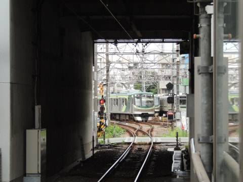 なお、写真右端側には、山手貨物線を恵比寿駅方面(渋谷・新宿方面)へ行く埼京線「E233系7000番台」が見えています。 2016.07.23現在 |