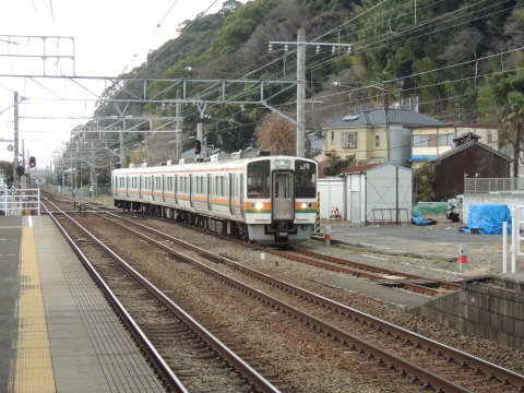 東海道本線 211系(上り) 清水駅方面(静岡・焼津方面)から興津駅(3番線)に接近中の、211系(LL12編成・3両編成)「普通 三島」行(784M・島田始発)です。 興津駅の1番ホーム南西側(清水・静岡寄り)にて撮影したもので、この列車は3番線に待避・停車して、この後に清水・静岡方面からやって来る「特急 ふじかわ7号」(4007M)の通過待ち(2番線通過)をします。 2015.01.24[13:50]現在 |
