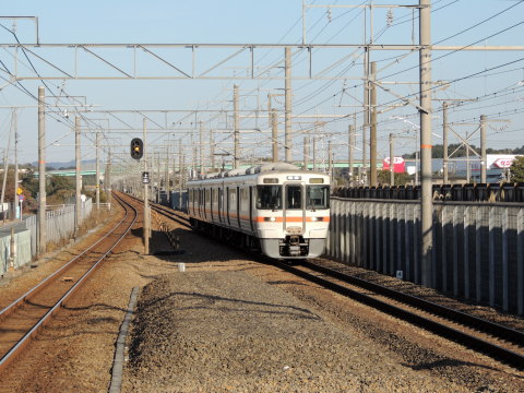 | 東海道本線 313系2500番台(上り) 浜松駅方面(新所原・豊橋方面)から天竜川駅(2番線)に接近中の、313系2500番台(T13編成・3両編成)「普通 静岡」行(788M・浜松始発)です。 天竜川駅の3番線ホーム西端側(浜松・豊橋寄り)にて撮影。 2014.12.27(Sat)[12:54]現在 |
