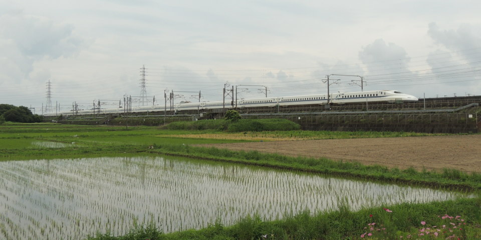 | 東海道新幹線 N700系(上り) 名古屋~三河安城間を三河安城駅方面(静岡・東京方面)へ行く、N700系です。 JR大高駅(東海道本線)のホームから撮影。 2012.06.28現在 |