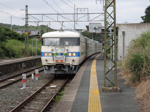 | トレイン117「団体臨時列車」(回送) 飯田線の長山駅の1番線(上り豊橋方面)に停車中の、トレイン117「団体臨時列車」(回送)です。 天竜峡駅からの折り返しの回送列車で、長山駅には約15分ほど停車するダイヤだったため、撮影に来たものです。 この後この列車は豊橋駅まで向かった後、東海道本線で岡崎、名古屋、岐阜を経由して所属する大垣車両区まで運転されたようです。 写真手前側が三河一宮駅方面(豊川・豊橋方面)で、この長山駅には他に約5名ほどの撮影者の方が訪れていました。 2013.07.21現在 |