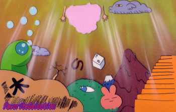 | でじこ ~Di Gi Charat (Dejiko) 「帰ってきたにょ父さま母さま、でじこが帰って来たにょ~♪」と言いながらデジキャラット城に向かって走るでじこです。 上の画像はセル画18枚で構成されています。 背景は映像出力コピーです。 |
