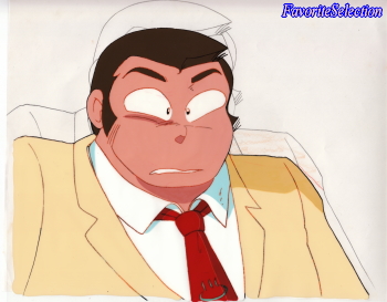 温泉マーク(♨) ~Onsen-Mark 「温泉マーク」は、あたる達の通う友引高校2年4組の担任で、本名は不明となっていて、校長先生からも「温泉先生」、「♨先生」と呼ばれるようです。 なお、上のセル画は残念ながら、セル画と原画(動画)が経年劣化によりお互いに張り付いてしまった状態で、セル画と原画(動画)をはがすことができませんでした。 原作では、いつも温泉マークの柄が多数プリントされている背広を着ていますが、アニメでは描きやすさを考慮したためなのか、温泉マークは背中に一箇所だけとなっていたようで、上のセル画を見ても温泉マークはネクタイの部分にしか見られません。 「温泉マーク」の担当は英語で、教育熱心な性格でもあり生徒指導の主任も兼ねていて、校則違反を犯そうとする諸星あたるら生徒たちと争う場面が多々あり、それがまた「うる星やつら」の面白い魅力を引き出していて、この「温泉マーク」のキャラクターは結構重要で欠かせない存在となっています。 なお、アニメでは温泉マークは、友引高校OBという設定が追加されているようです。 温泉マークのCV(声優担当)は、池水通洋さんです。 |