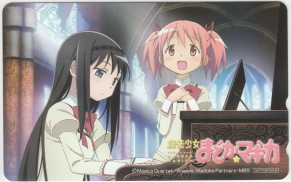 魔法少女まどか☆マギカ テレカ 「ソフマップ」の『魔法少女まどか☆マギカ』Blu-ray/DVD全巻購入特典のテレホンカード(非売品)です。 暁美ほむらのピアノの伴奏に鹿目まどかが歌を歌っている様子のイラストが、2人の仲が良さそうな雰囲気を醸し出していてなんとも可愛らしいです♪。 2012.1.6 |