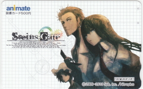 STEINS;GATE(シュタインズ・ゲート) 図書カード 2010年5月下旬からのアニメイトのポイント交換景品(2点)の図書カード(非売品)で、イラストはhuke氏によるものです。 2011.12.2 |
