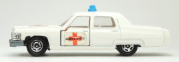 | キャデラック アンビュランス 1976年6月に発売された「キャデラック アンビュランス」(No.F19/外国車シリーズ・アメリカ車)のトミカ(日本製/No.F19-1)です。 トミカの「キャデラック フリートウッド ブローアム」(No.F2-1/実車は1970年代頃のモデル)がベースとなっていて、ボンネット部分上面と車体側面には、赤十字が描かれ「AMBULANCE」と書かれたシールが貼られています。