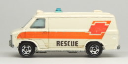 | シボレー シェビーバン アンビュランス 1977年7月に発売された「シボレー シェビーバン アンビュランス」(No.F22/外国車シリーズ・アメリカ車)のバリエーションの1つとなっているトミカ(日本製/No.F22-1)です。 車体側面には、オレンジ色のラインと赤十字マークがデザインされ、黒い字で「RESCUE」と書かれたシールが貼られています。