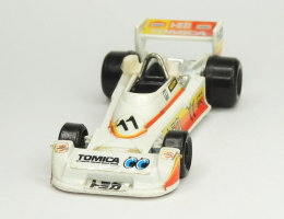 | トミカ シェブロン BMW 1978年9月に発売された「トミカ シェブロン BMW」(No.F69/イギリス車)のトミカ(日本製/No.F69-1)です。 「トミカ シェブロン BMW」は、1978年(昭和53年)に「トミー」(当時)がスポンサーとなってデビューしたF2マシン「シェブロンB42/BMW M12/7」なのだそうです。
