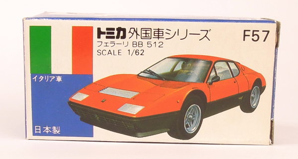 1979年1月に発売された「フェラーリ BB 512」(No.F57/外国車シリーズ イタリア車)のトミカ(日本製/No.F57-1)です。