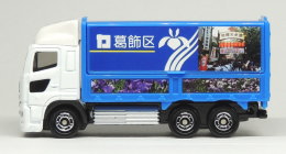 | 日野プロフィア 葛飾トラック 2019年(令和元年)8月17日(土)に発売された「日野プロフィア 葛飾トラック」(No.48)のトミカ(ベトナム製/No.48-11)です。 実車の3代目「日野 プロフィア」(2017年~)がモデルとなっています。 この「日野プロフィア 葛飾トラック」のトミカは、「タカラトミー」の本社のある東京都葛飾区と共同で開発されたのだそうで、トミカとしては初の市区町村自治体とのコラボ商品となっているそうです。 株式会社タカラトミーは、「玩具の街」(おもちゃのまち)としても知られる東京都葛飾区と、連携・協力を推進するための協定を締結していて、地域活性化を目的に様々な施策を葛飾区と共に取り組んでいるそうです。