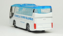 | 日野 セレガ トミカタウン観光バス 2019年に開催されたトミカ博の入場記念品として配布された非売品の「トミカ イベントスペシャル 日野 セレガ トミカタウン観光バス」のトミカ(ベトナム製/No.101-5)です。 屋根(ルーフ)部分にはブルーのクリアパーツが使用され、白色の車体側面に青字で「TOMICA TOWN KANKO」(トミカタウン観光)、「トミカエキスポ号」と書かれているのが特徴です。
