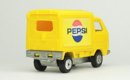 | ホンダ TN360 パネルバン(ペプシ) 1971年1月に発売された「ホンダ TN360 パネルバン」(No.19)のトミカ(日本製/No.19-1)です。 この「ホンダ TN360 パネルバン」のトミカは、車体色が黄色で、後部荷台側面に当時の「ペプシ」のロゴマークが大きく描かれたシールが貼られているのが特徴となっています。 「ペプシ」(PEPSI)は、アメリカの大手飲料メーカーである「ペプシコ社」が製造・販売するソフトドリンク飲料のブランド名で、日本においても、特に「ペプシコーラ」が有名な商品となっています。