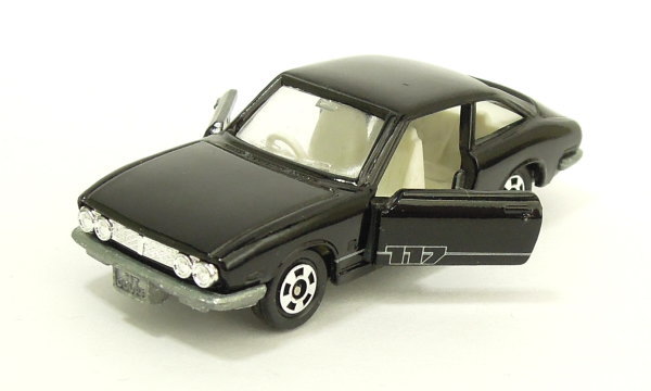 後に実車は1973年3月から大量生産に移行したそうで、この「いすゞ 117クーペ 1800XE」のトミカは、大量生産に移行後に登場した中期型(通称:量産丸目)の最上位グレードの「1800XE」の実車がモデルとなっています。