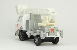 | 東京電力高所作業車 (いすゞ エルフ スカイマスター) 2004年2月に発売された「東京電力」特注の「東京電力高所作業車」のトミカ(中国製/No.38-5-11)です。 「いすゞ エルフ スカイマスター」(No.38-5)のトミカがベースとなっていて、1984年11月から2011年5月31日まで東京都渋谷区神南にあった東京電力の企業博物館「電力館」や「でんこちゃんショップ」(でんこちゃんは東電のマスコットキャラクター)などの東電関連施設にて販売されていたそうです。 なお、このトミカが発売された時に同時に、「東京電力大型緊急車(トヨタ ハイエース)」、「東京電力小型緊急車(トヨタ プロボックス)」の東京電力特注トミカが発売されたようです。