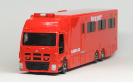 | いすゞ ギガ 拠点機能形成車 2016年(平成28年)9月17日(土)に発売された「いすゞ ギガ 拠点機能形成車」(No.137)のロングタイプのトミカ(ベトナム製/No.137-3)です。 パッケージの説明文によると、拠点機能形成車は、東日本大震災での緊急消防救助隊の活動における教訓を踏まえ、消防庁が大規模災害時の被災地の長期的かつ過酷な状況下での消防応援活動を支援するための資機材を積載した車両なのだそうです。