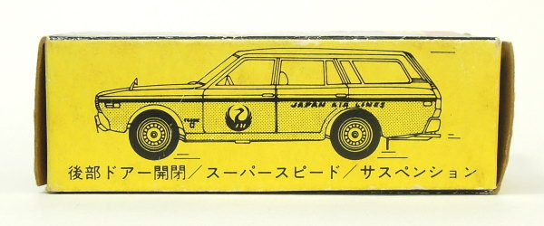 このトミカは、1971年2月から1975年6月まで販売された3代目「日産 セドリック」(230型系)のステーションワゴンをベースとした、日本航空の連絡車仕様がモデルのトミカとなっています。