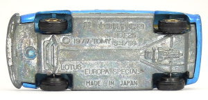(パッケージ表記) JPS ロータス ヨーロッパ JPS LOTUS EUROPA SCALE 1/59 (車体底面) LOTUS EUROPA SPECIAL tomica © 1977 TOMY NO.F25 S=1/59 MADE IN JAPAN 発売時価格 ¥240円 ※パッケージに特にギミックの記載無し (サスペンション/エンジンフード開閉) 発売期間 1977年12月~1979年7月 2023.03.02現在 |