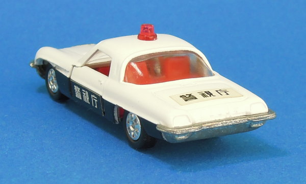 このトミカは、マツダ(当時の正式社名は東洋工業株式会社)が1967年(昭和42年)5月から1972年まで販売した初代「マツダ コスモスポーツ」の、1968年7月にマイナーチェンジにより登場した後期型(L10B型)がベースのパトカー仕様のトミカとなっています。