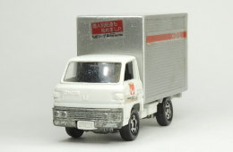 | ちばコープ オリジナル トラック (三菱 キャンター) 2001年頃から「生活協同組合ちばコープ」の店頭や宅配にて販売が開始されたとされる「ちばコープ オリジナル トラック」のトミカ(中国製/運転席シートが黒色)です。 4代目「三菱ふそう キャンター」(1978年11月~1985年)がモデルとなっていて、このトミカは、運転席のシートが赤色のものと黒色のもの(写真のトミカ)があるようで、前者のトミカは1999年12月頃に販売が開始されているようです。 車体には、パッケージに同梱されていた自分で貼るシールが、キャビン(運転席のある箱の部分)のドア部分、後部荷台の前面、側面、後部の各部分に貼られています。