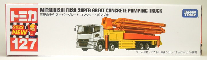 2022年9月17日(土)に発売された「三菱ふそう スーパーグレート コンクリートポンプ車」(No.127)のロングタイプのトミカ(ベトナム製/No.127-5)です。