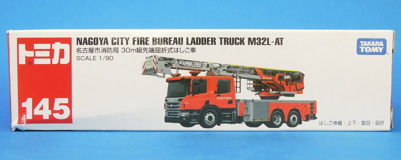 2021年(令和3年)6月19日(土)に発売された「名古屋市消防局 30m級先端屈折式はしご車」(No.145)のロングタイプのトミカ(ベトナム製/No.145-3)です。