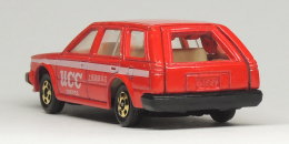この「ニッサン ブルーバード ワゴン」のトミカのバリエーションとしては、「大和デパート」特注品(緑色、白色)、献血運搬車(白色)、無塗装のトミー販促品、フロントグリルがメッキ仕上げなどがあり、そのほか一般輸出品仕様は、車体側面の文字が「UCC COFFEE」のみや、側面の白いラインと文字が書かれていない車体色が赤一色のものなどがあるようです。 NISSAN BLUEBIRD WAGON tomica ©TOMY NO.34 S=1/60 MADE IN JAPAN 発売時価格 ¥320円 スーパースピード/サスペンション/ リアドアー開閉 発売期間 1984年8月~1992年3月 2019.08.27現在 |