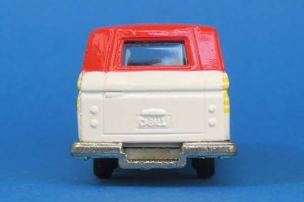 このトミカは、1975年(昭和50年)4月に発売された「日本航空 キャブオール連絡車」(No.101-1)のバリエーションとされていますが、車体底面には「NO.67」の刻印があることから、このトミカも「日本航空 キャブオール連絡車」(No.101-1)のトミカも、1973年(昭和48年)8月に発売された「ニッサン キャブオール 事故処理車」(No.67-1)のトミカの金型が流用されていることがうかがえます。 |