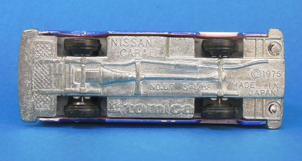 車体底面(裏板)には、「NISSAN CABALL」、「tomica ©1975 NO.67 S=1/68」、「MADE IN JAPAN」などと刻印されています。