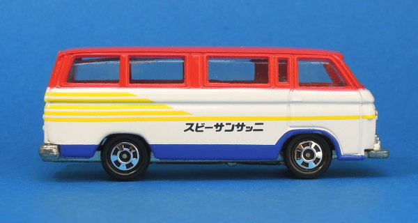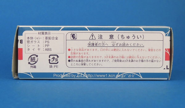 私の入手したこのトミカは、車体左側面の「ニッサンサービス」の文字の「ス」の下あたりに、青い塗料の汚れが付着していました。