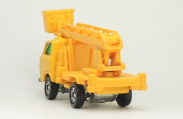 | ニッサン キャブオール スカイマスター (No.88) 1974年10月に発売された「ニッサン キャブオール スカイマスター」(No.88)のトミカ(日本製/No.88-1)です。 この「ニッサン キャブオール スカイマスター」(No.88-1)のトミカは、いわゆる高所作業車のトミカとして初めて登場した第1号の高所作業車トミカとなっています。(厳密にいうとNo.88-1-1のモデルが第1号) 写真のトミカのホイールは「11Fホイール」となっていて、発売後期のバリエーションとなっています。 このトミカは、同じ日本製でも「11Bホイール」のバリエーションも存在します。