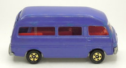 | 日産 キャラバン ハイルーフ バン (トミカくじⅢ) 2001年12月に発売された「トミカくじⅢ」(全20種)のうちの1台となっていた「日産 キャラバン ハイルーフ バン」のトミカ(中国製/No.3-3)です。 車体色は青色系基調で、車体左側面のスライドドア部分は黒く塗られ、左側面後部に黒い字で「TOMICA」と書かれているのが特徴です。