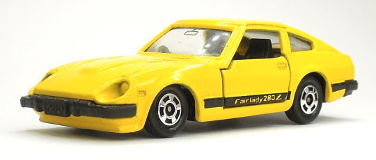 | ニッサン フェアレディ 280Z-T 1979年5月に発売された「ニッサン フェアレディ 280Z-T」(No.15)のトミカ(日本製/No.15-3)です。 写真のトミカは、発売初期のモデルの車体色が黄色系基調のものとなっています。 この「フェアレディ 280Z-T」のトミカは、1978年(昭和53年)8月から販売が開始された2代目「フェアレディZ」(S130型系)のグレード「280Z-T」がモデルになっているトミカとなっています。