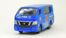 | 日産 NV350 キャラバン (祭/トミカ組み立て工場) 2016年に開催された「トミカ博」会場の「トミカ組み立て工場」にて販売が開始された「トミカ組み立て工場 第16弾」の「日産 NV350 キャラバン」のトミカ(ベトナム製/No.105-8)です。 車体に「祭」仕様のデザインが施されているのが特徴で、写真の車体色が青色のトミカの他に、車体色が赤色、黄色のバリエーションが存在します。 また、写真のトミカは車内のシートなどのインテリア(内装)が黒色ですが、ほかに青色、赤色のバリエーションも存在します。