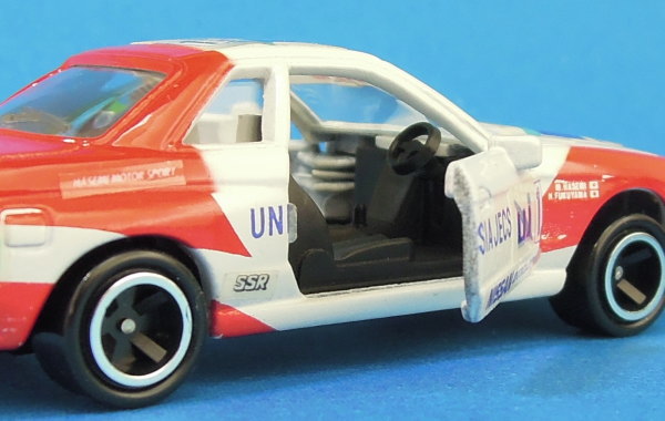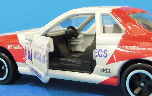 実車のリアのナンバープレート部分にも「TOMY」のロゴが記されていて、当時のトミーが「ハセミモータースポーツ」のスポンサーとなっていたようなので、1993年仕様の「UNISIA