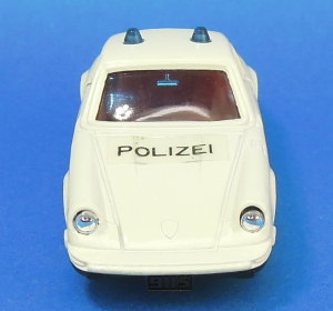 写真のトミカは、車体色がややクリーム色を帯びた白色系で、ドイツ語で「警察」を意味する「POLIZEI」と書かれたシールが車体に貼られ、屋根上に青色系のクリアパーツが使用された2つの警光灯が取り付けられているのが外観上の特徴となっています。