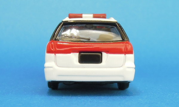 「スバル レガシィ ツーリングワゴン」(3代目レガシィ)がベースとなっている、献血運搬車仕様のトミカとなっていて、「歩行者等横断禁止」の標識のミニチュアが付属しています。