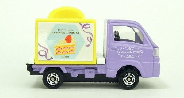 後部荷台のケーキボックス側面には、ケーキなどが描かれ、「Premium quality La pâtisserie TOMICA TOKYO」と書かれたシールが貼られています。 |
