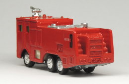 | 東急化学消防車 1975年3月に発売された「東急化学消防車」(No.94)のトミカ(日本製/No.94-1-1)です。 「東急化学消防車」は、空港などの飛行場や化学コンビナート(工場群)などに配備された特殊な化学消防車のようで、大規模火災に対処するために通常の消防車よりも装甲が厚く、屋根上に化学消火剤を噴射するための大型放水銃を装備しているのが特徴となっています。
