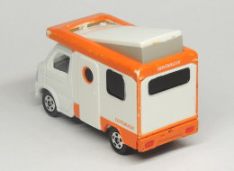 テントむし (スズキ キャリイ) 2008年6月21日(土)に発売された「テントむし」(No.90)のトミカ(中国製/No.90-6)です。 「テントむし」(TENTMUSHI)は、「バンショップ ミカミ」(VAN SHOP MIKAMI/鹿児島県曽於市)さんにより販売されている軽キャンピングカーの名称で、このトミカの「テントむし」は「スズキ キャリイ」がベースとなっています。 車体には「TENTMUSHI」と書かれています。