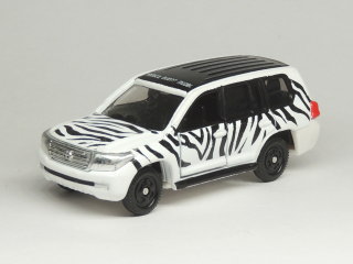 トヨタ ランドクルーザー(ゼブラ仕様) 2013年に開催された「トミカ博」にて販売された「トミカイベントモデル NO.14」の「トヨタ ランドクルーザー(ゼブラ仕様)」のトミカ(ベトナム製/No.5-5)です。 2008年6月に発売された「トヨタ ランドクルーザー」(No.5-5)のトミカがベースとなっていて、屋根上のフロント側には「トミカ イベント モデル」と英語表記で書かれ、車体にはシマウマのような白と黒の縞模様が描かれています。